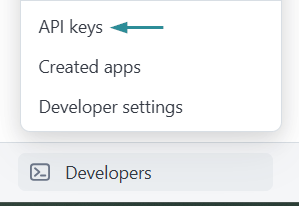 In your Stripe account, click the Developers link at the bottom left of the page: